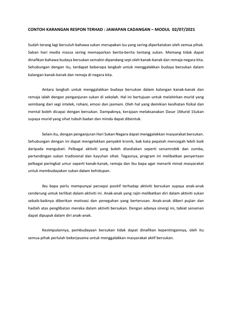 Contoh Karangan Respon Terhad Modul 02072021 Pdf